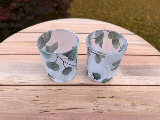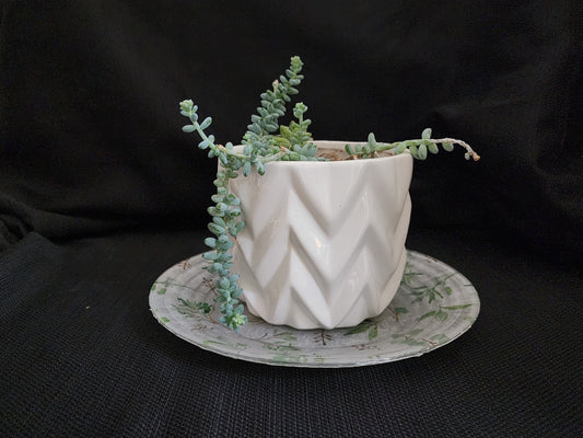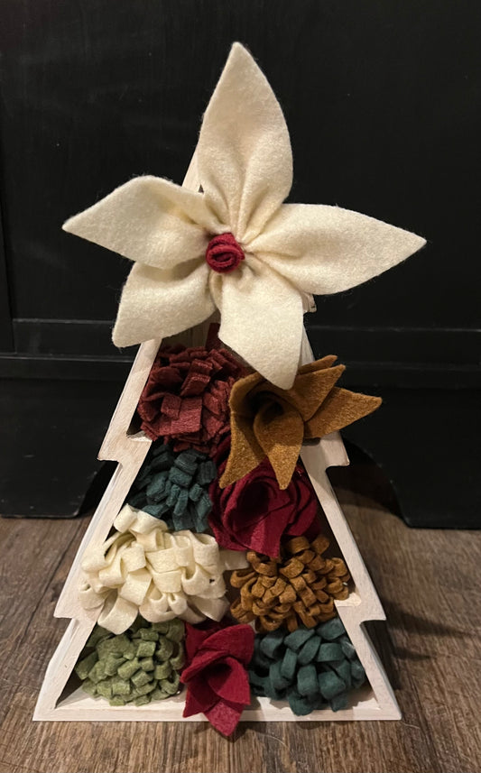 Decor items to be displayed on a tabletop or shelf. Items are adorned with felt succulents and flowers.