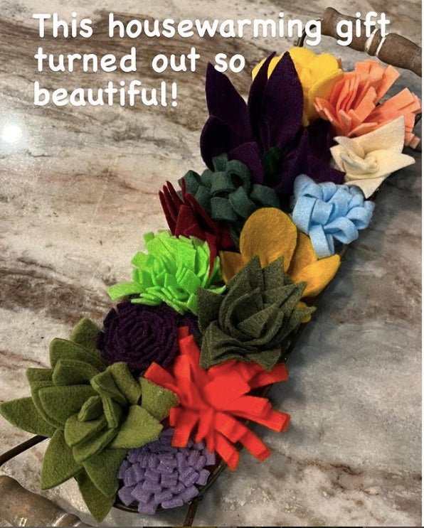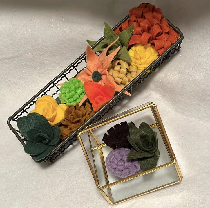 Forever felt flowers and succulents in colors of your choice make the perfect accent piece.