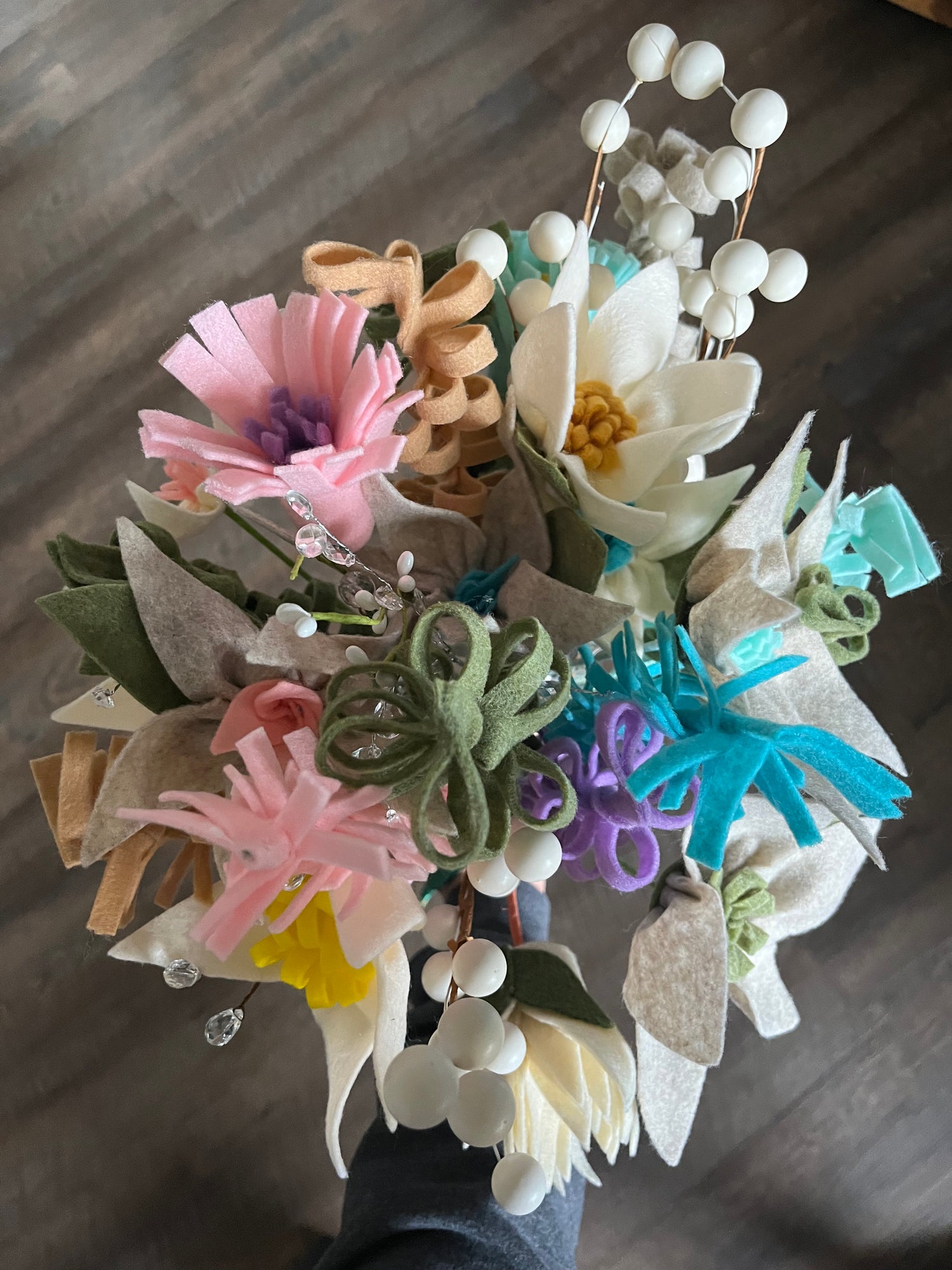 Customized felt flowers for a wedding celebration!