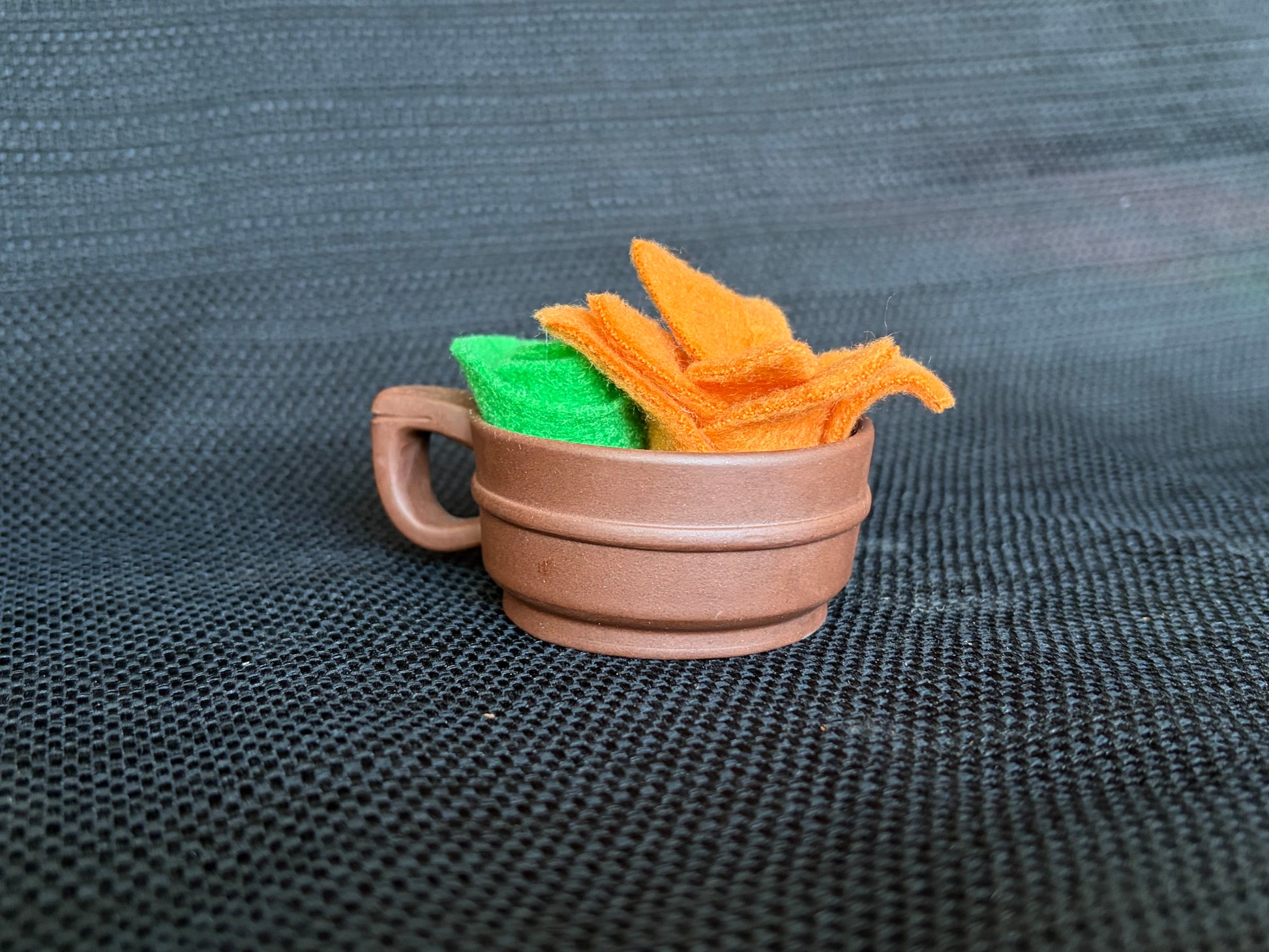 Small container with 1-3 succulents in various complementary colors. Here are samples but I have a variety of colors and a variety of containers. Really the options are endless. Succulents even work in a coconut shell or on a petrified mushroom. Check pics for proof!